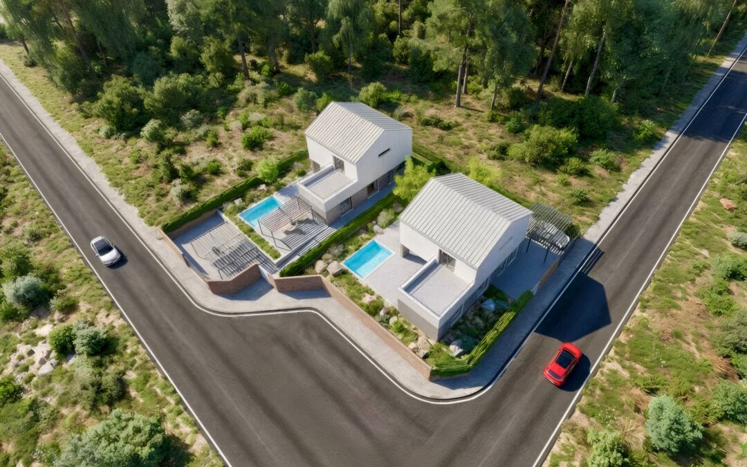 Se encuentra distribuida en dos plantas, la planta baja cuenta con una habitación de invitados con un baño propio, una cocina espaciosa y funcional ya amueblada, un aseo y un salón-comedor amplio con vistas al porche. La planta alta cuenta tres dormitorios: el principal con un baño y vestidor individual. También cuenta con un baño, y un estudio paralelo al dormitorio principal. Dispone de la posibilidad de crear una piscina privada con iluminación nocturna y depuración con sistema de cloración salina, para así reducir el de gasto del mantenimiento y mejorar la calidad de agua. Contiene un sistema individual de Aerotermia para la calefacción y el suelo refrescante.